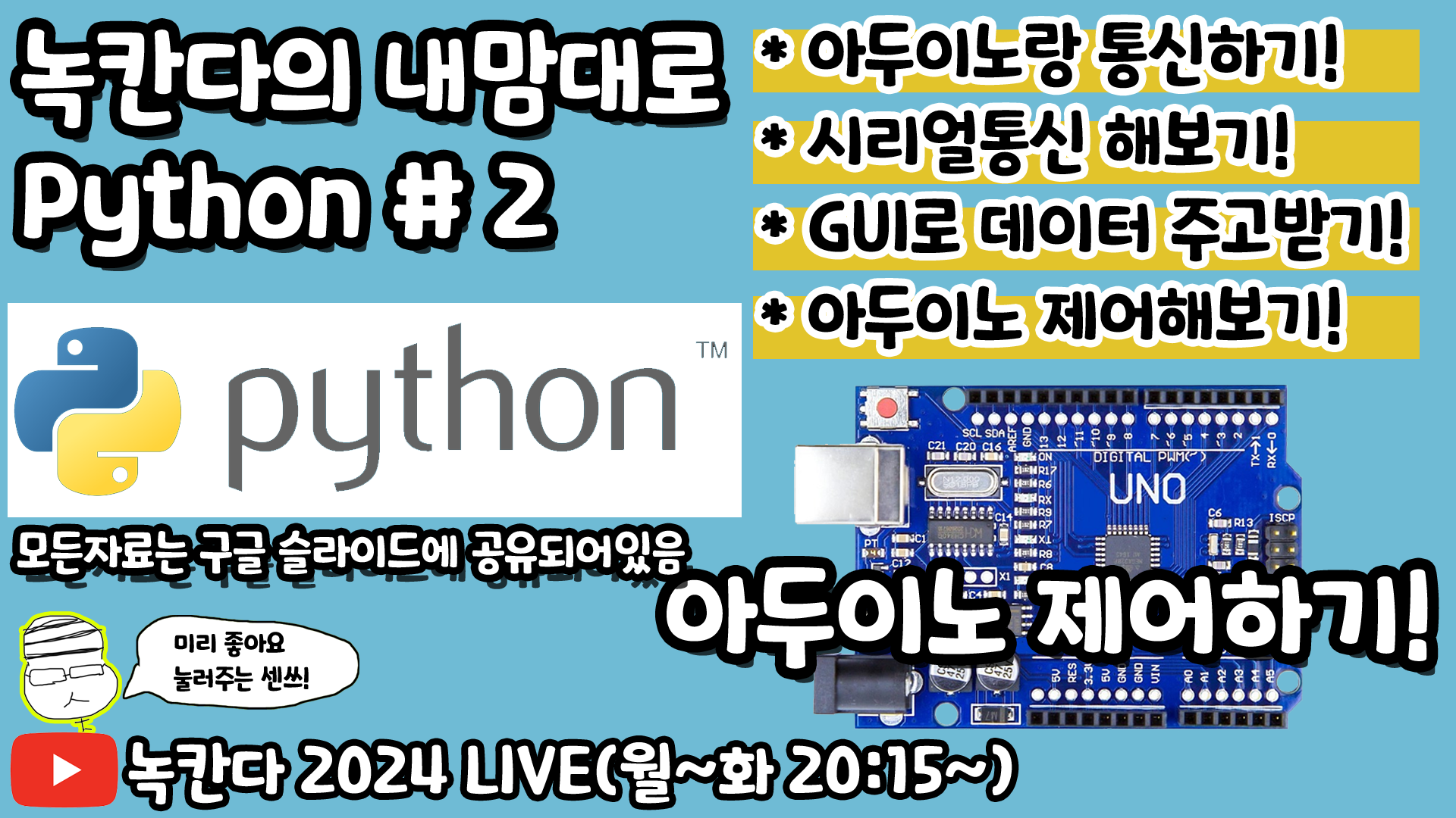 [PYTHON#2] tkinter로 만든 python gui app으로 아두이노와 시리얼통신 해보기! (녹칸다의 내맘대로 파이썬)