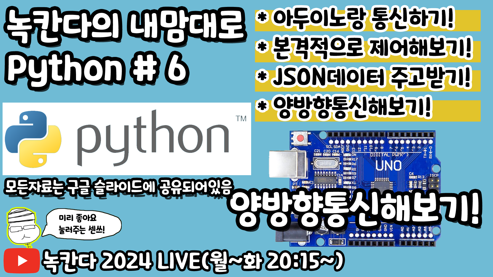 [PYTHON#6] arduino에 각종 모듈을 연결해서 python으로 양방향 제어해보기! (녹칸다의 내맘대로 파이썬)