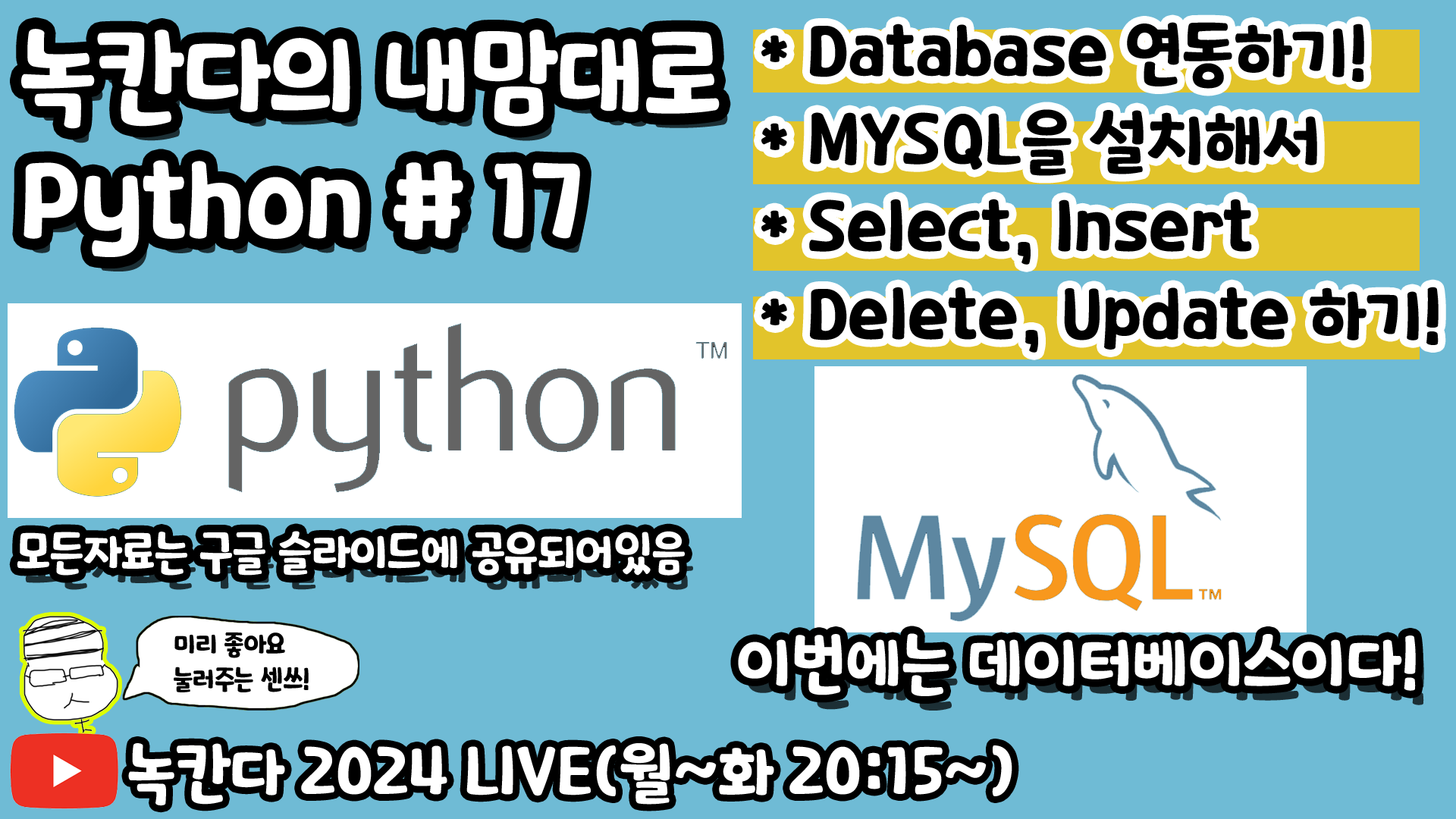 [PYTHON#17] 데이터베이스(database)와 연동하기위해서 mysql과 workbench 설치하기!(녹칸다의 내맘대로 파이썬)