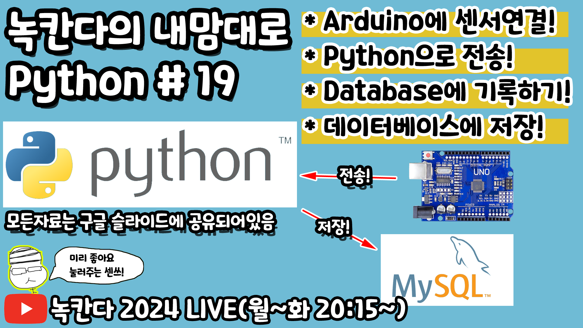 [PYTHON#19] Arduino로 센서값을 측정해서 python으로 전송하고 database(mysql)에 저장해보기!(녹칸다의 내맘대로 파이썬)