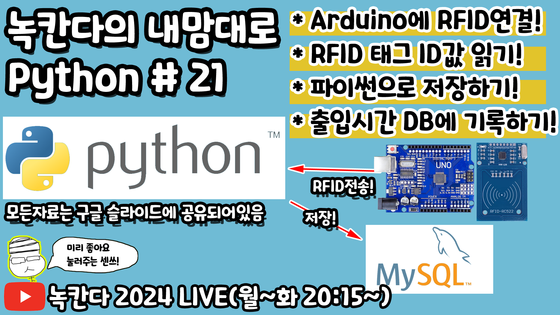 [PYTHON#21] Arduino에 RFID리더인 RC522를 연결해서 태그의 ID로 출입시간을 데이터베이스(MYSQL)에 기록해보기!(녹칸다의 내맘대로 파이썬)