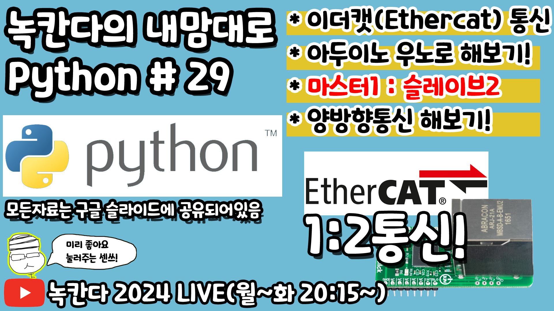 [PYTHON#29] 마스터(master)와 슬레이브(slave)가 1:2로 이더캣(ethercat)통신을 아두이노(arduino)로 해보기 하편!(녹칸다의 내맘대로 파이썬)