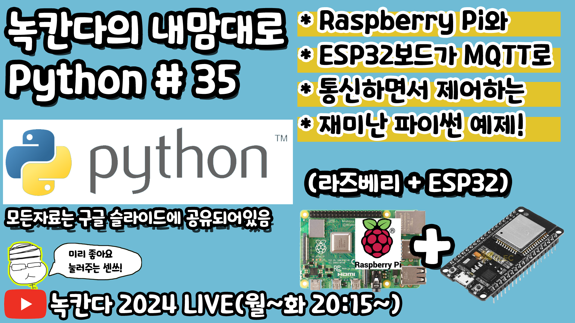 [PYTHON#35] 라즈베리파이(raspberry pi)에 ESP32를 MQTT통신으로 연결해서 제어하는 재미난 예제 만들기!(녹칸다의 내맘대로 파이썬)