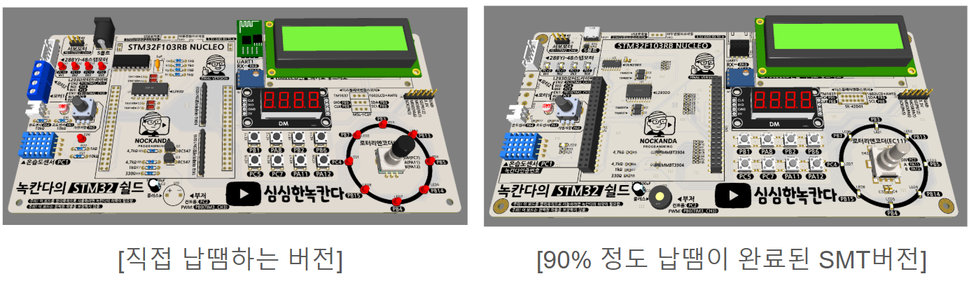 녹칸다가 제시하는 STM32쉴드는 아래와 같은 2가지 형식이 존재한다!