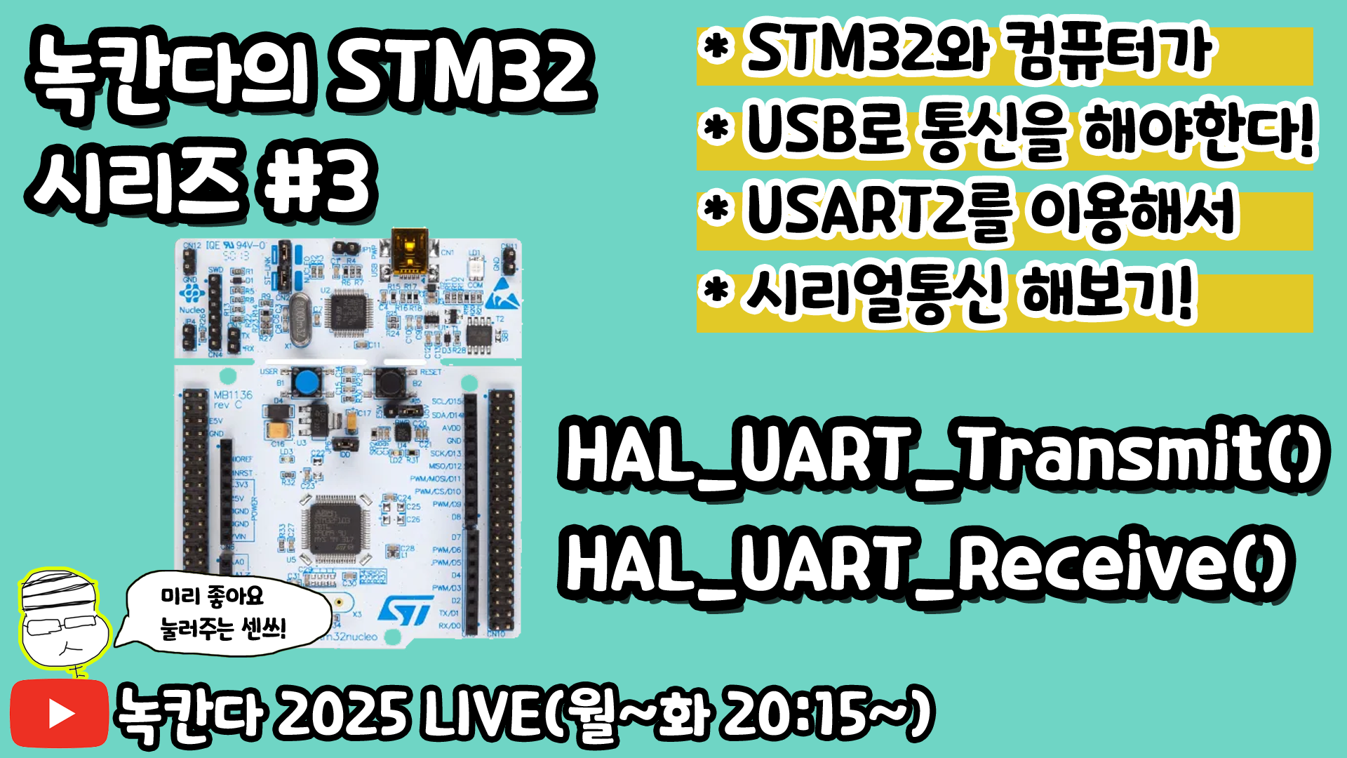 [STM32#03] STM32F103RB NUCLEO보드에서 HAL_UART_Transmit(), HAL_UART_Receive() 함수를 이용해서 USART2 시리얼통신 해보기!(녹칸다 내맘대로 STM32)