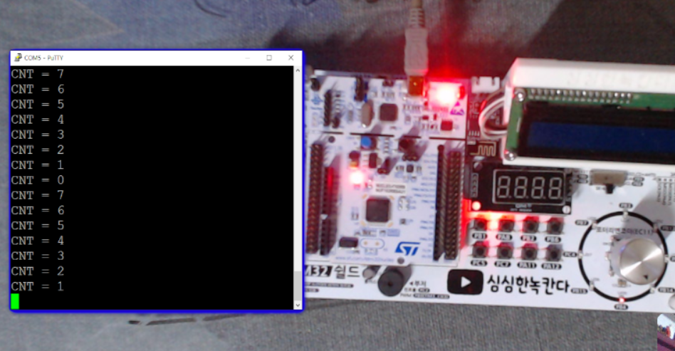 5.녹칸다가 로터리엔코더를 돌렸을때 시계방향으로 회전시키면 값을 0에서 7까지 증가시키는데 7에서 8이 되는게 아니라 0이 된다!, 반시계방향으로 회전하면 7에서 0방향으로 감소시키는데 0에서 1감소되면 -1이 되는게 아니라 7이된다!
