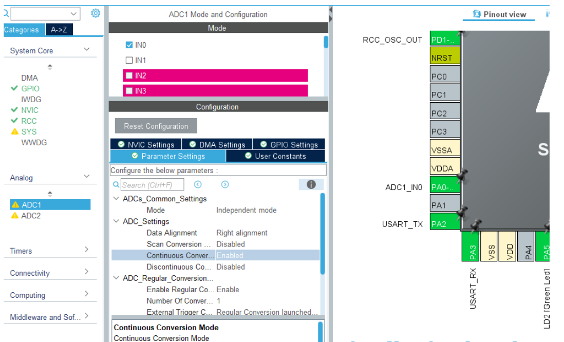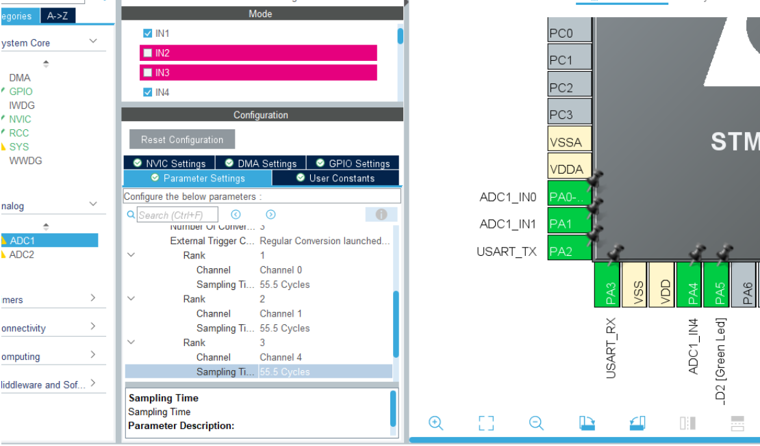 6.지금 사용하는 뉴클레오보드는 ADC1과 ADC2로 2개로 구성되어있고 이하에 IN이라는 여러개의 채널로 구성되어있다!