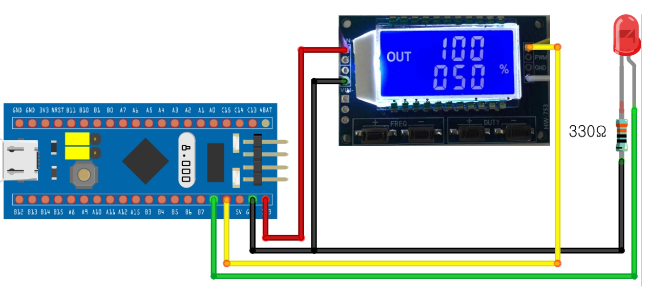 1.STM32의 PB9에 주파수발생기를 연결하고 PB8에 LED를 연결해서 주파수 발생기에서 엣지를 검출할때 마다 PB8의 LED가 토글되도록 하시오!