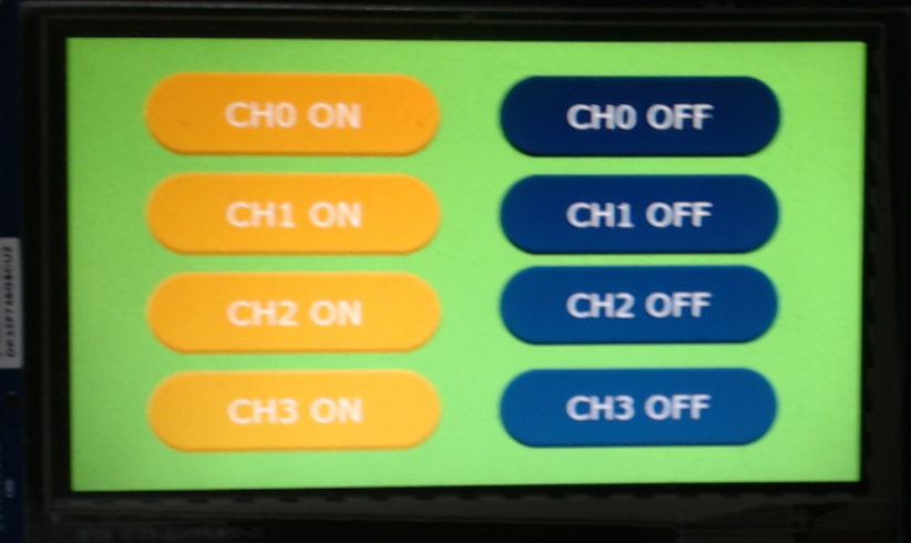 1.RS485모듈을 F746보드의 uart7에 연결하고 touchgfx로 버튼 8개를 작화해서 버튼을 터치했을때 4채널릴레이의 0~3번 채널까지의 릴레이를 on/off하는 기능을 구현하시오!(4채널릴레이의 ID는 1로 지정되어있음)