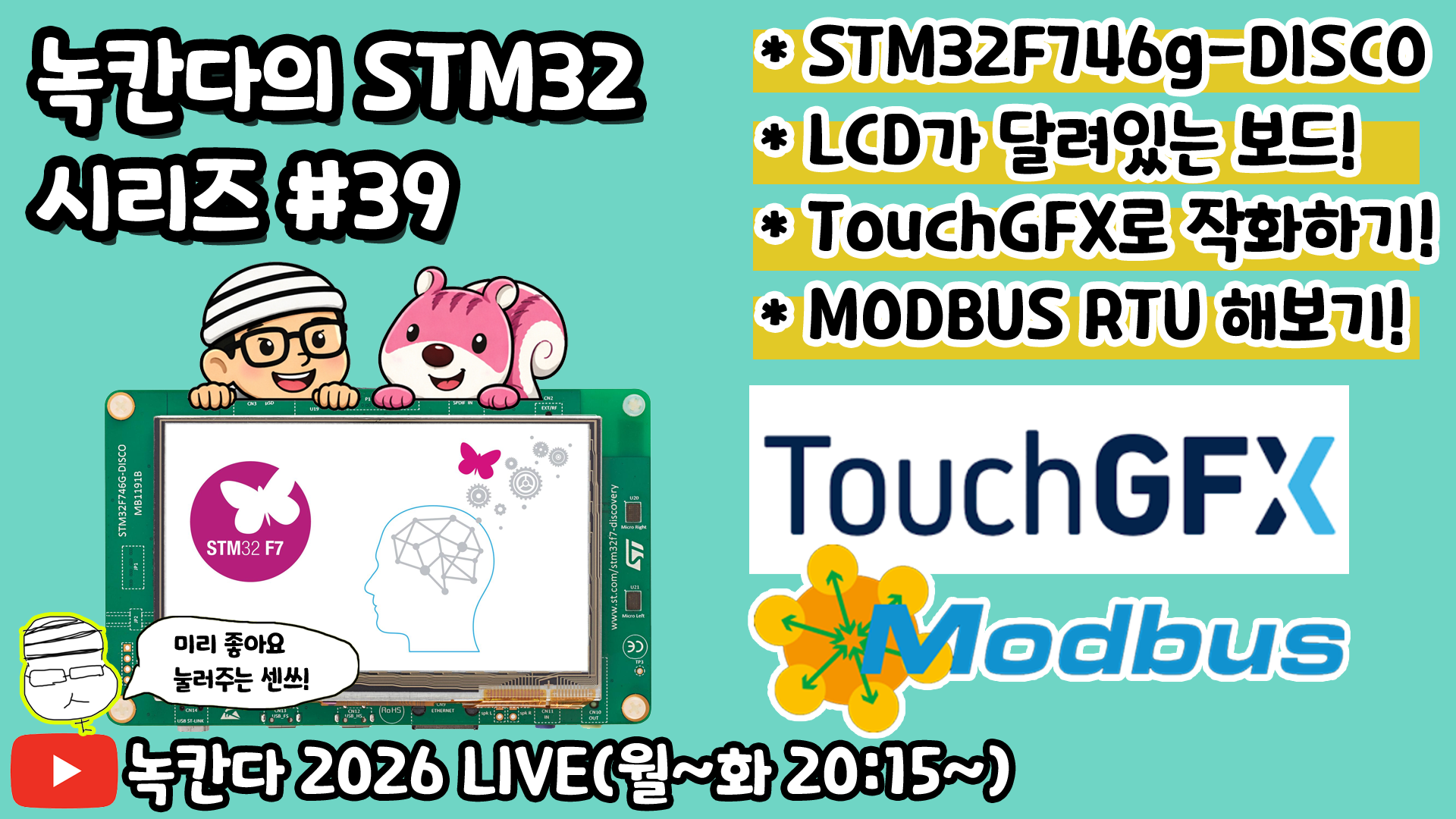 [STM32#39] TOUCHGFX와 RS485통신으로 modbus rtu 4채널릴레이와 온습도센서를 연동시켜보기!(녹칸다 내맘대로 STM32)