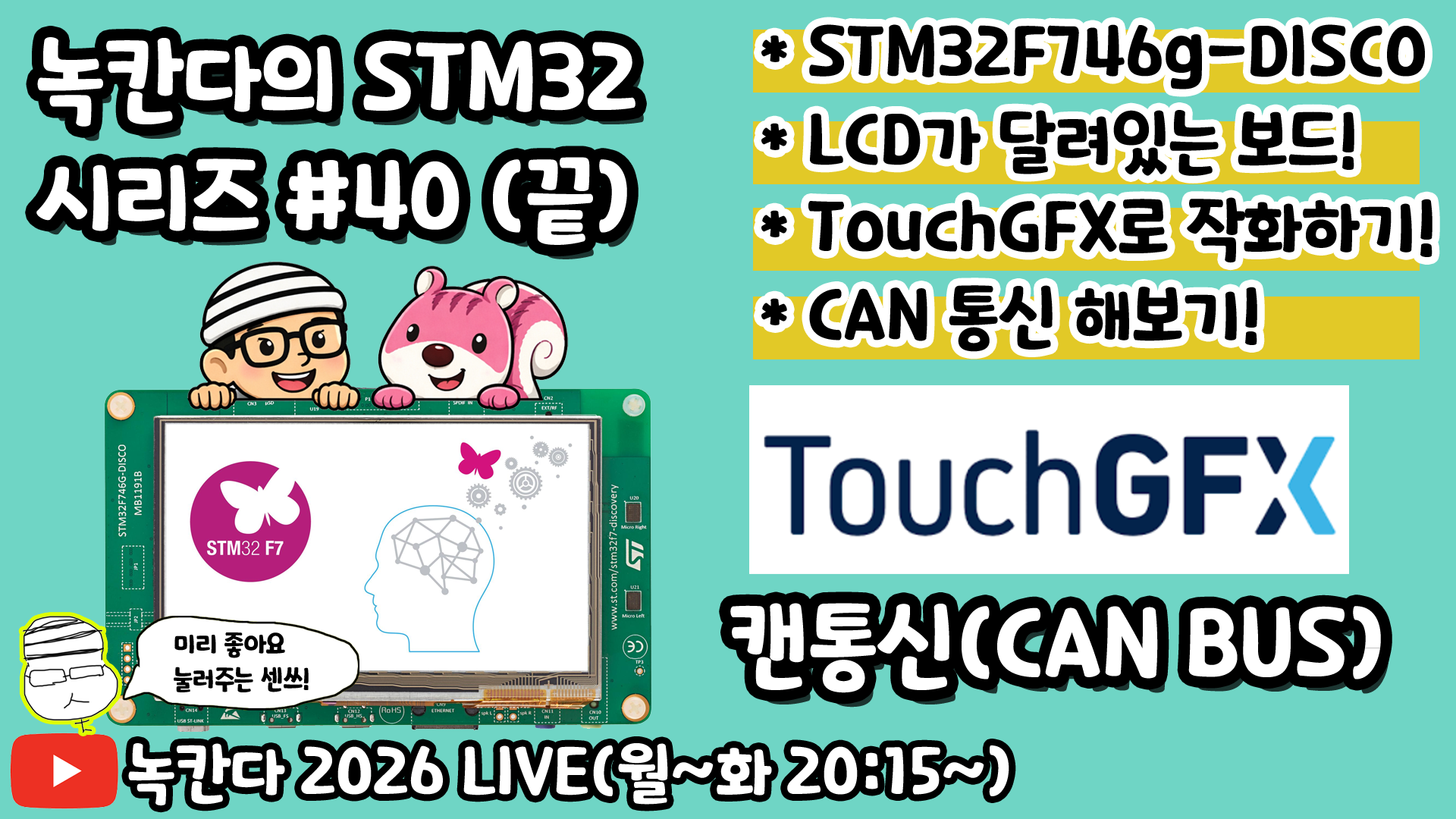 [STM32#40] TOUCHGFX와 CAN통신으로 PC와 통신하는 방법 알아보기!(녹칸다 내맘대로 STM32)